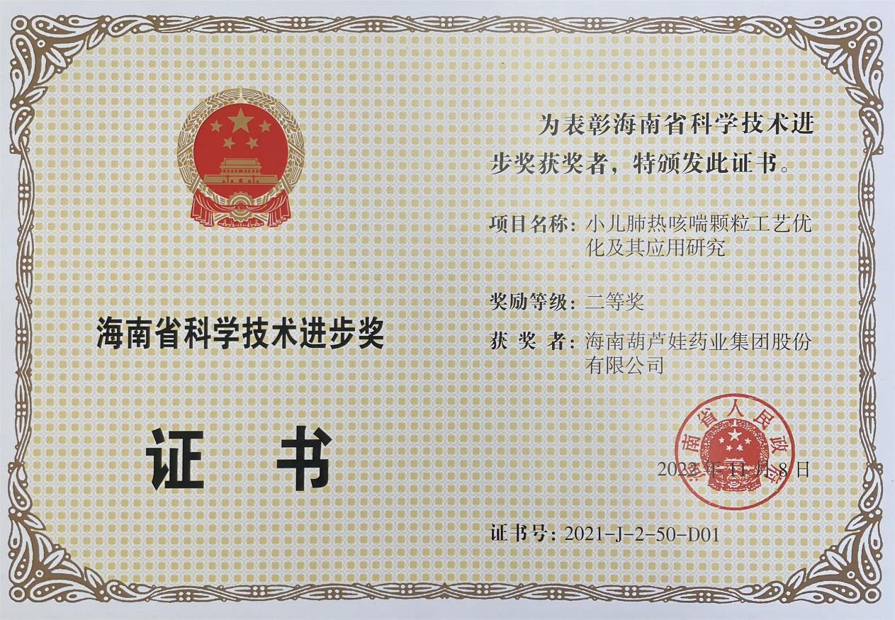 为此,小儿肺热咳喘颗粒的制备方法获得了第二十一届中国专利优秀奖(2019年),专利申请号:ZL201010134951,此次作为专利技术的应用,获得了2021年度海南省科学技术进步奖二等奖。在此之前,304am永利牌小儿肺热咳喘颗粒还多次被授予“临床价值中成药品牌”、“中国连锁药店最具合作价值单品”,荣登“中国医药品牌榜”。