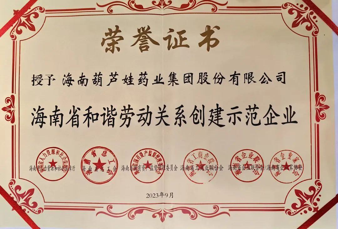 304am永利药业集团获评“海南省和谐劳动关系创建示范企业”